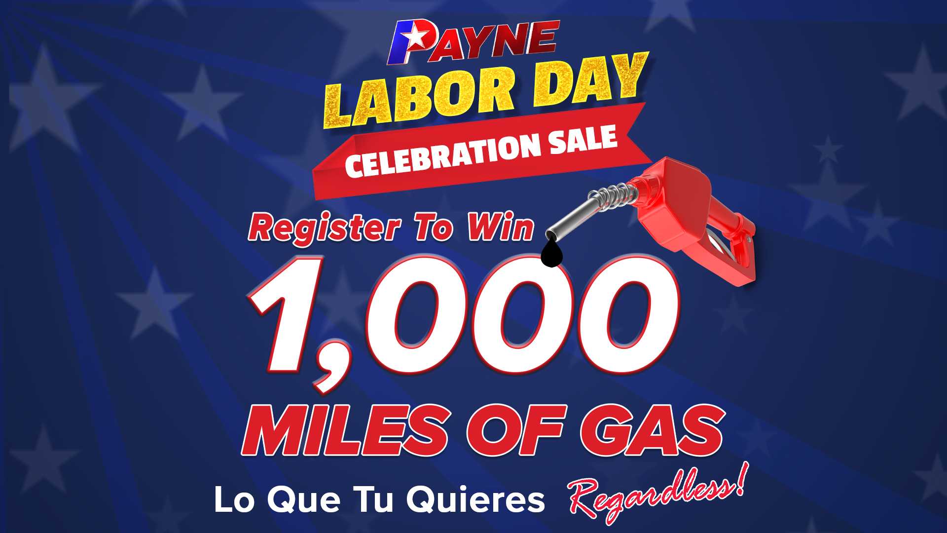 Ready to get started? Find a Payne Auto Group location near you and let’s find the right vehicle for your needs. Register today for your chances to WIN 1,000 miles of GAS!