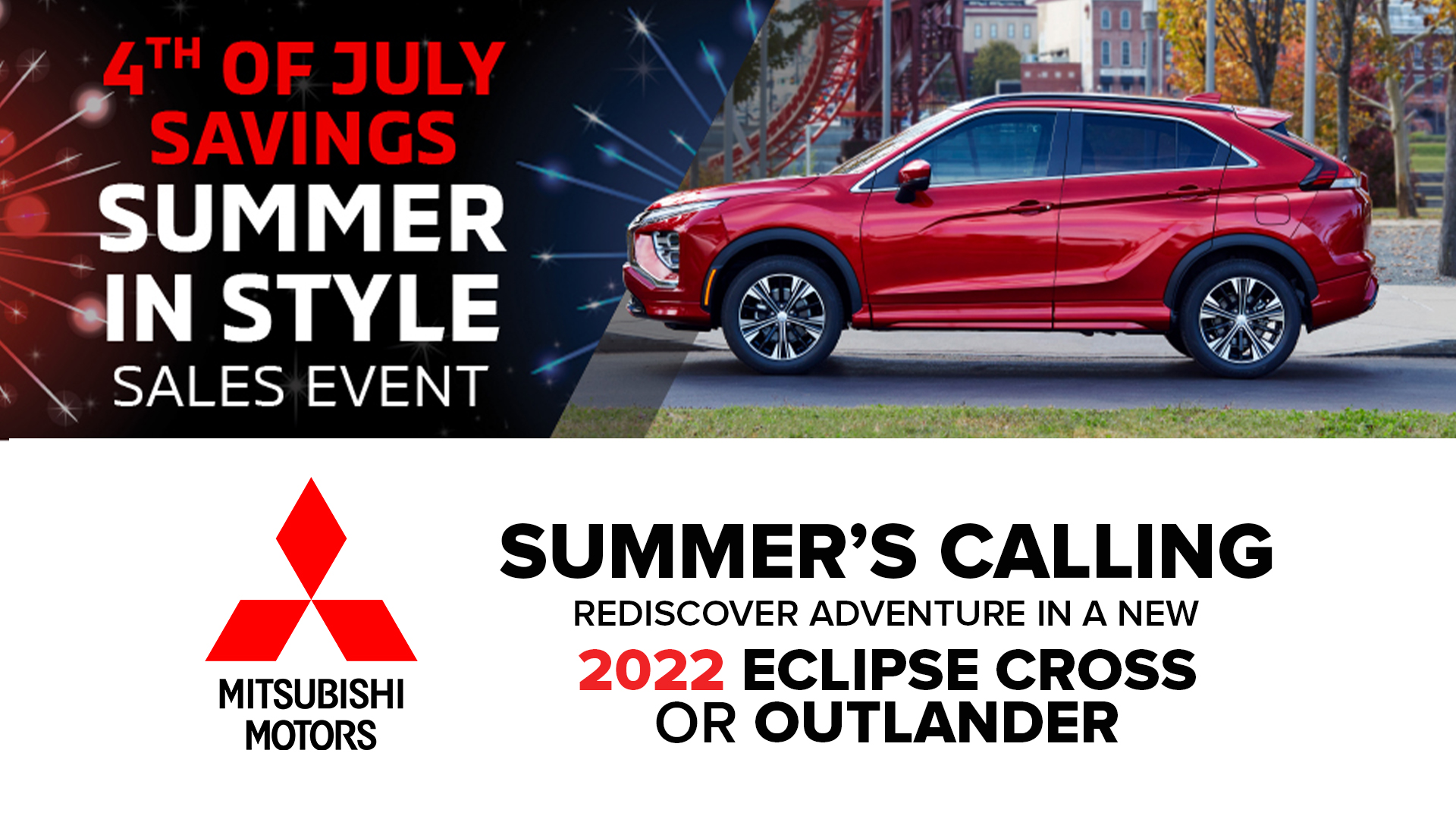 Fourth of July Sales Event! Shop, start and Save in style with Mitsubishi 2022 Outlander or 2022 Mitsubishi Eclipse Cross! Get the vehicle you and your family need and ride on to your new adventure!