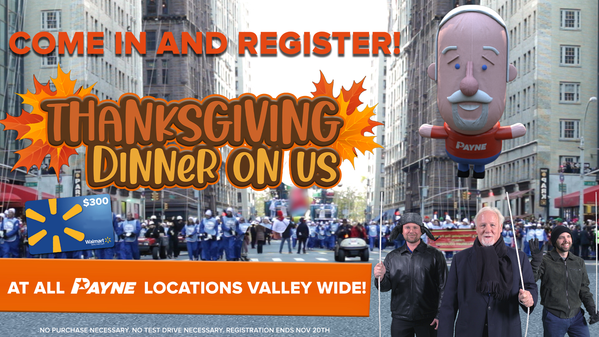Come by to any Payne locations Valley Wide and register to win a Thanksgiving Dinner on Us!
