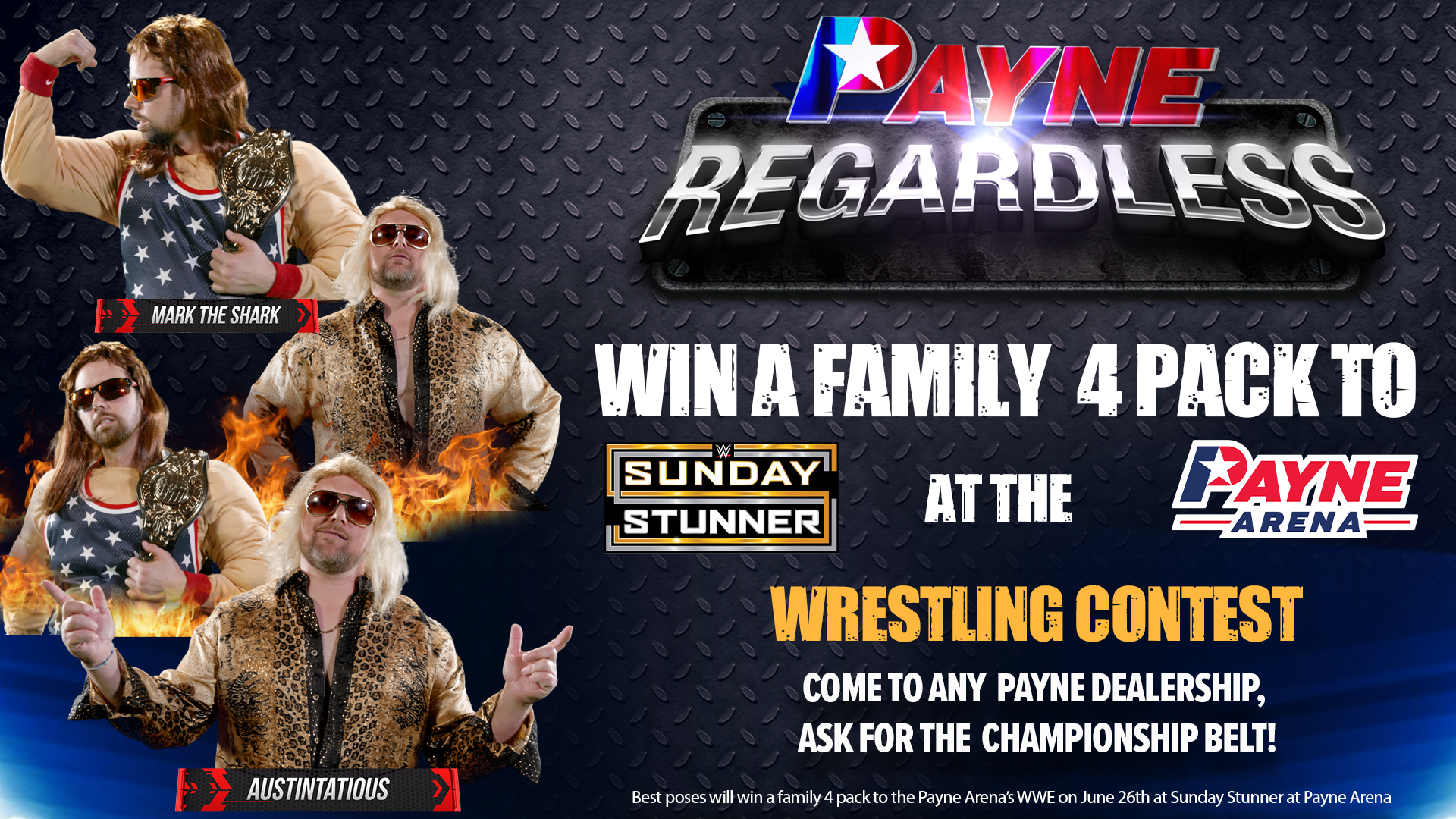 Stop by any Payne dealership to get a chance to win a family 4 pack to WWE Sunday Stunner at the Payne Arena!